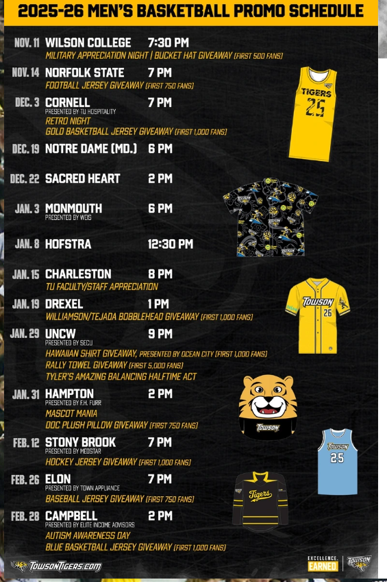 https://towsontigers.com/news/2025/11/2/towson-mens-basketball-opens-season-against-loyola-at-cfg-bank-arena.aspx https://towsontigers.com/documents/2025/10/31/Loyola.pdf Love the new game notes. List wingspan and projected starters (only because it was St. John's).2 points