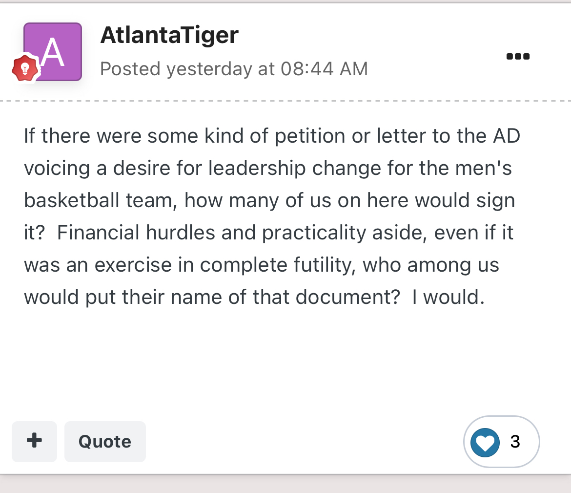 Conversely, I really wouldn’t care all that much about beating a big-name school if we were making the NCAA Tournament, every 3 or 4 years. Unfortunately, we don’t do either thing.