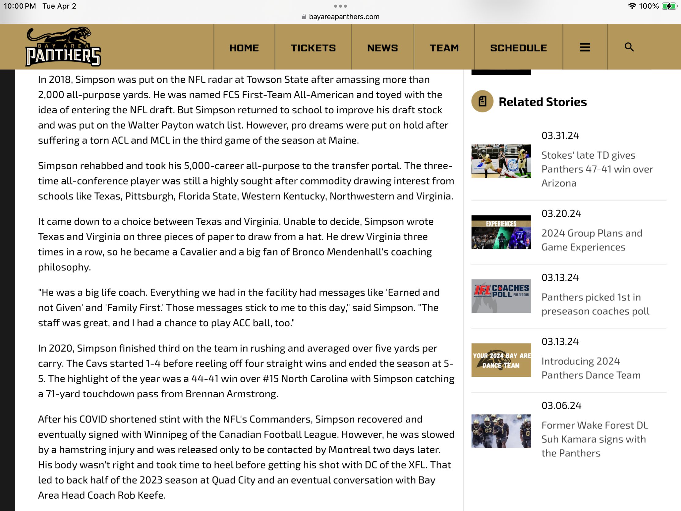 Bay Area Tiger Posted April 3, 2024 Report Posted April 3, 2024 Will get to a Panthers game this summer to support Simpson who played for Towson State 🫣 1 Quote
